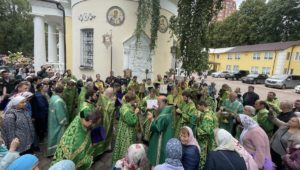 После Литургии был совершен крестный ход и молебное пение Соловецким святым. Настоятель храма поблагодарил управляющего викариатством за посещение прихода и совместную молитву. Владыка Мефодий обратился к общине с поздравительным словом и наградил благодарственными письмами активных прихожан.