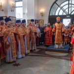Его Преосвященству сослужили благочинный Параскево-Пятницкого округа, настоятель храма великомученицы Параскевы Пятницы в Качалове протоиерей Анатолий Кожа; благочинный Андреевского округа, настоятель храма Живоначальной Троицы в Старых Черемушках протоиерей Николай Карасев; настоятель храма праведного воина Феодора Ушакова протоиерей Виктор Сандар, а также настоятели и духовенство храмов викариатства.