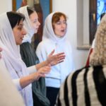За Литургией молились сестры милосердия Сестричества Северо-Восточного викариатства во имя преподобной Евфросинии Московской. После богослужения у сестер была возможность пообщаться с владыкой.