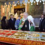 Еще раз поздравляю вас с этим замечательным праздником, с этим событием. Вспоминая героические страницы жизни народа и Церкви, конечно, нельзя еще и еще раз не возблагодарить Господа за все: за то, что мы прошли как народ, за то, что мы выжили в тяжелейших условиях физически во время войн, за то, что мы сохранили веру православную во времена страшных беспрецедентных гонений, и за то, что мы снова с вами в этом соборе всея Руси, в центре нашей Родины, в Успенском соборе, собираемся, чтобы прославить имя Господа и Спасителя нашего и возблагодарить Пречистую Царицу Небесную за Ее милость, за Ее покров над страной нашей и над всеми нами.