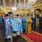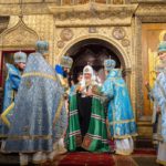 К богослужению в Успенский собор был принесен чудотворный московский список Казанской иконы Божией Матери, который был обретен в 2023 году. Перед началом богослужения в алтаре собора Святейший Патриарх Кирилл поклонился честным мощам святителя Петра, митрополита Московского. Затем депутат Государственной Думы Федерального Собрания Российской Федерации, староста Патриаршего Успенского собора в Кремле Н.Ю. Чаплин, заместитель генерального директора музеев Московского Кремля по научной работе А.Л. Баталов и настоятельница Новодевичьего ставропигиального женского монастыря игумения Маргарита (Феоктистова) представили Его Святейшеству новый комплект облачений ручной работы для мощей святителя Петра, который создавался в течение двух лет в мастерских Новодевичьего монастыря. Лик на покрове повторяет лик, который вышит на плащанице 1574 года, одной из сохранившихся древнейших плащаниц на мощах святителя Петра, созданной в Новодевичьем монастыре в светлицах инокини Александры, в миру княгини Иулиании Дмитриевны Палецкой, супруги князя Юрия Васильевича, брата Ивана Грозного.