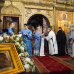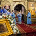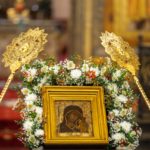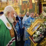 По окончании Литургии Святейший Патриарх Кирилл совершил славление и молитву перед чудотворным Казанским образом Божией Матери.
