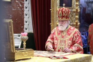 В праздник Положения ризы Господней в Москве Патриарший митрополит Крутицкий Павел совершил Литургию в Храме Христа Спасителя