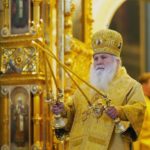 По прибытии в храм перед началом богослужения Предстоятель Русской Православной Церкви поклонился мощам святителя Филарета, митрополита Московского.