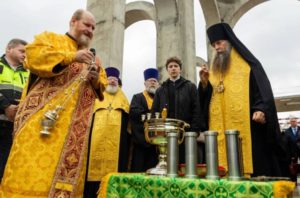 Памятные капсулы с землей заложили в основание алтарной части храмового комплекса.
